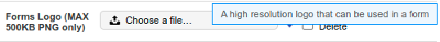Inside the profile look for the Forms Logo field shown below.