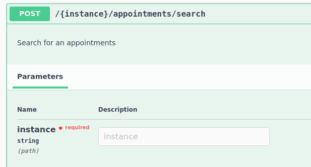 For the endpoint /{instance}/appointments/search