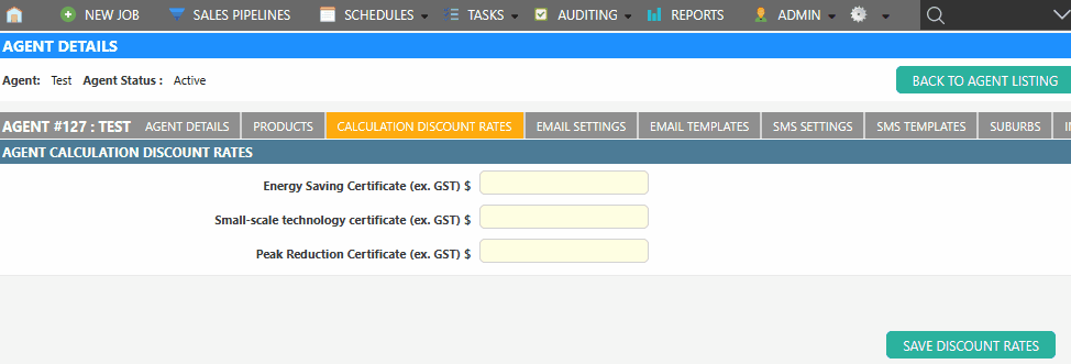 Each Agent can have custom values for the rates used when calculating discounts from calculations