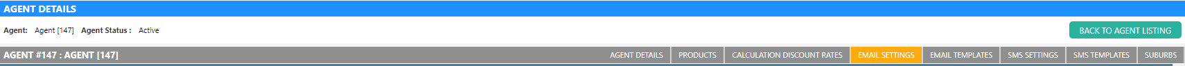 - Open the selected Agent’s email settings by clicking Email Settings