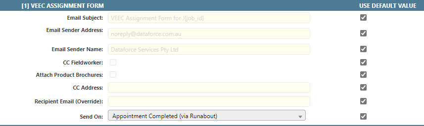 - Any settings that are overridden here will only apply to appointments where the Job Agent matches the selected agent.