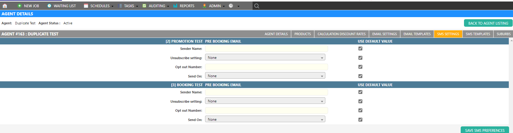 SMS settings allow different agents to customise existing SMS Types to their preference or for a specific task.