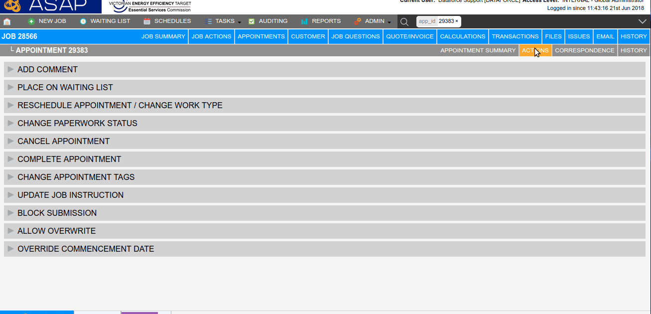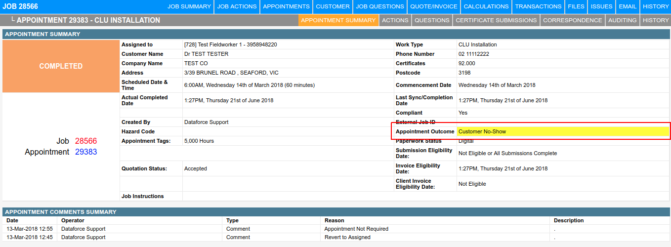 If a datafile attends an appointment and cannot commence due to inaction by the customer, an appointment can be completed as a customer no show. This completion leaves the appointment in a completed status but with no question answers or products included in the appointment. It can be later invoiced in an RCTI to pay the datafile for attendance only.
