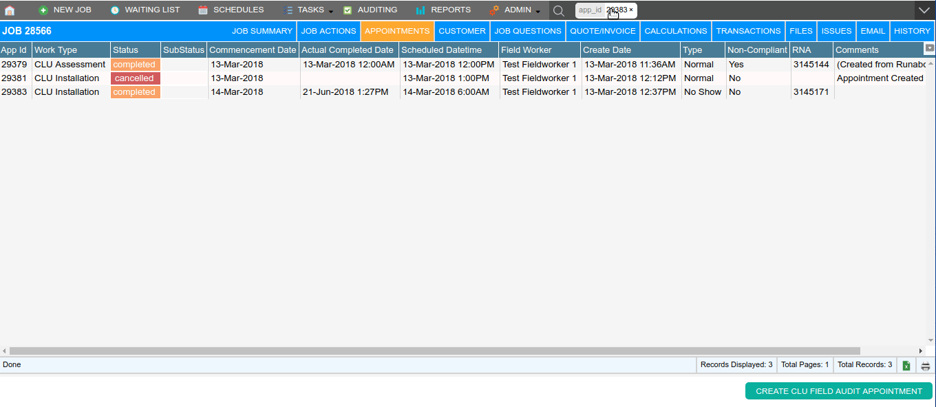 Booking a followup appointment can be done from the Appointments Tab in the Job Bar.