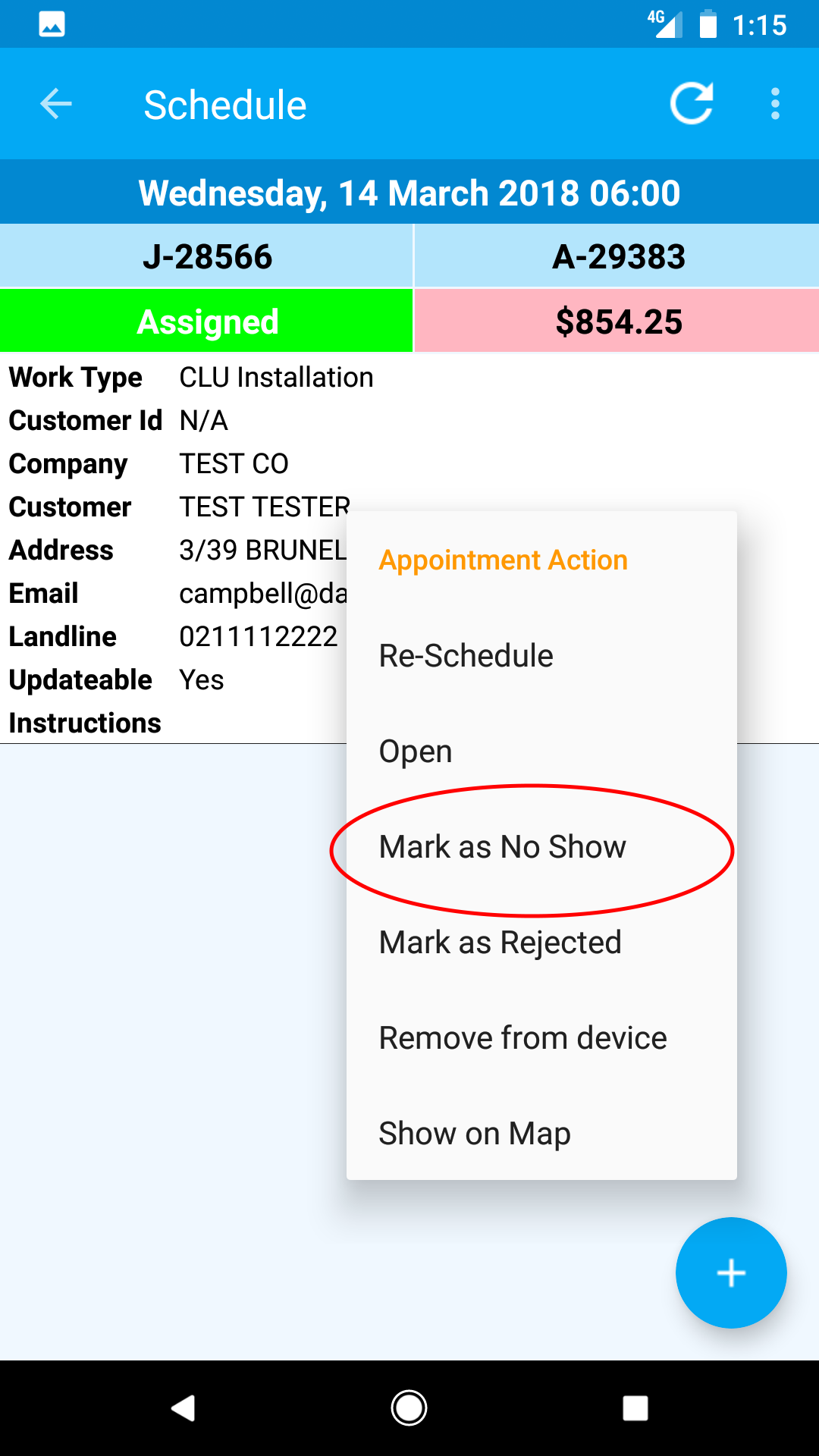 Completing an Appointment as a No Show on Dataforce Runabout.
