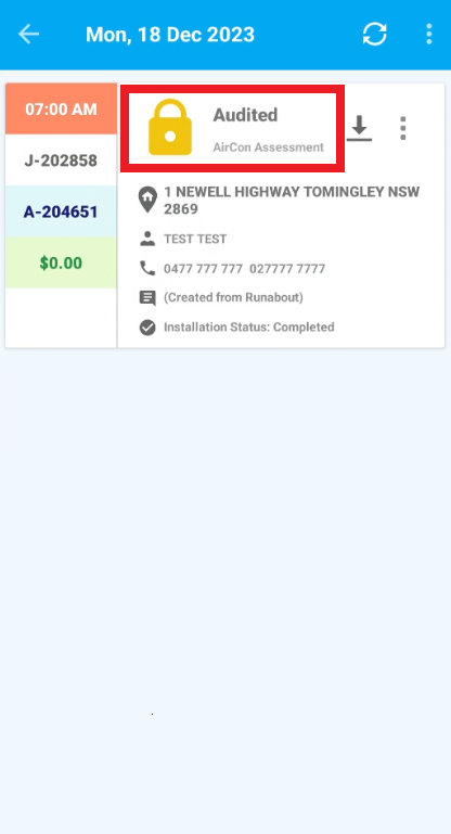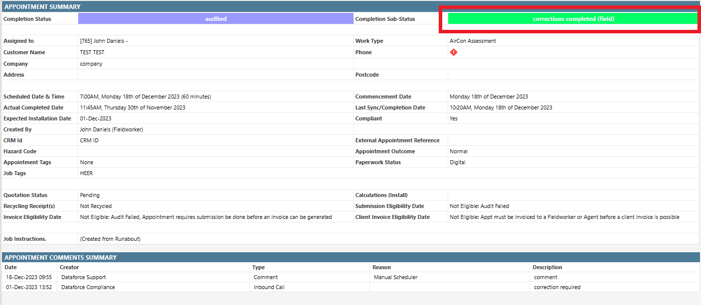 - Appointment visible in Audit - Corrections Required screen.