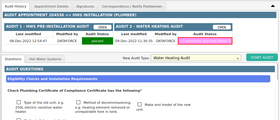 If the appointment has a passed compliance status and is yet to finish the mandatory audits, Dataforce ASAP will override the Pass status with Partial. It will be changed back when the last mandatory audit is finished.