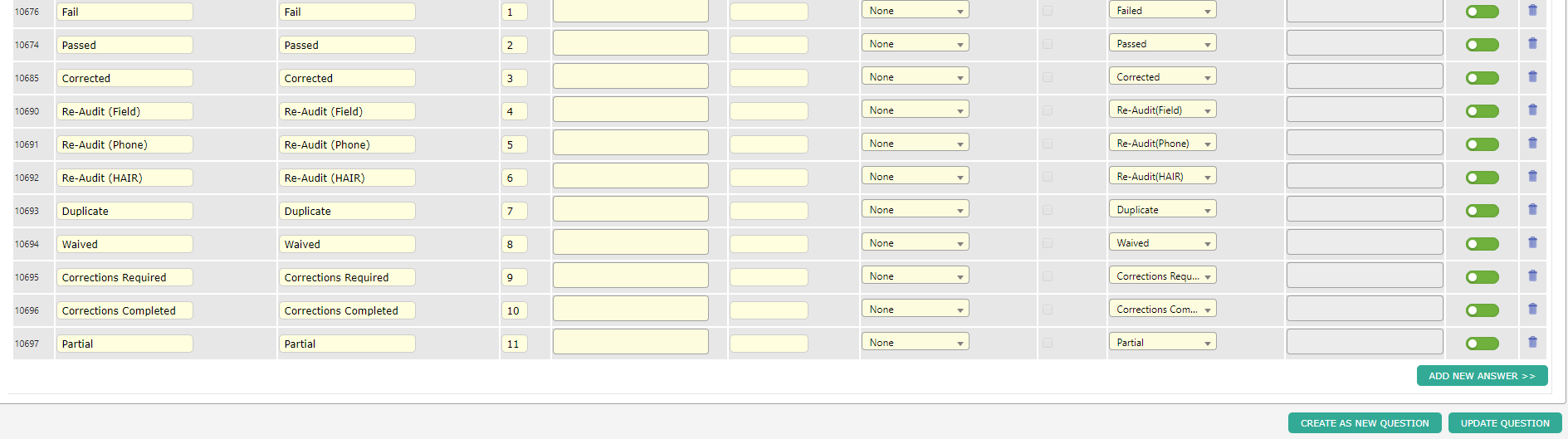 - The required audit status is for any question answers (if applicable) under the answers tab
