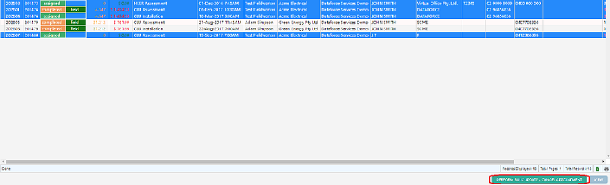 Bulk updating is a method of applying one of the following preset operations to a number of appointments or jobs at once: