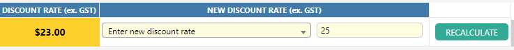 - Select the drop down list under the ‘NEW DISCOUNT RATE’ section at the bottom left of the job’s calculation tab.