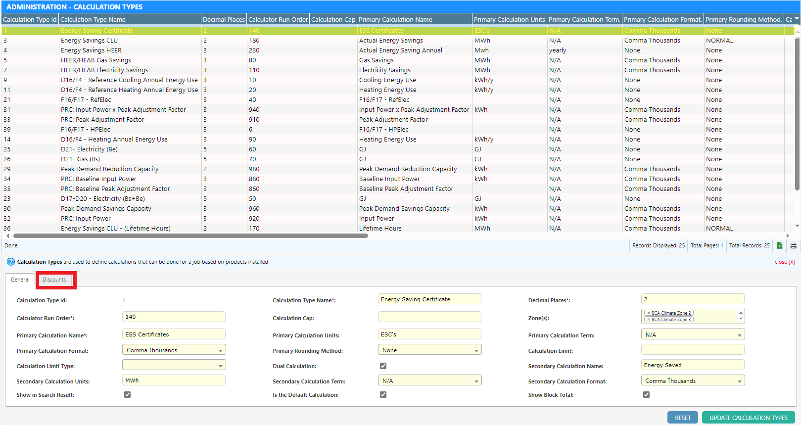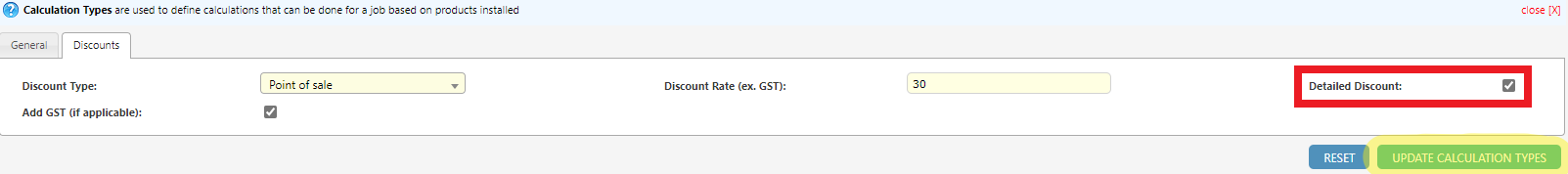 Click on “Discounts” within the selected calculation type.