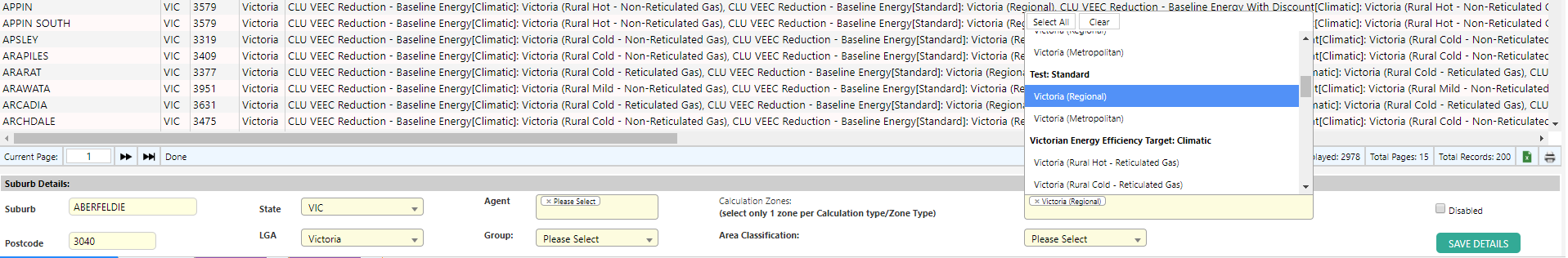 Add the zones to the required suburbs.