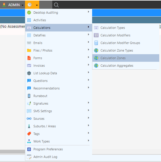 - Navigate to the Calculation Zone Management screen through Calculations Calculation Zones.