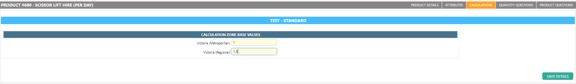 Calculation zones provide a method for linking a product to a calculation type.