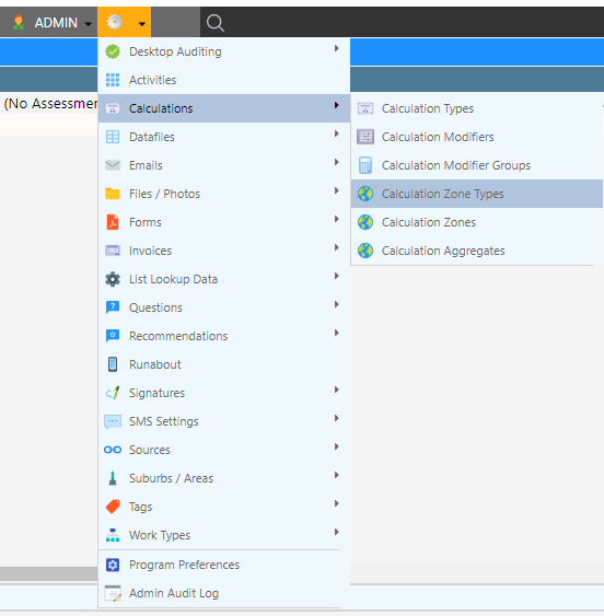 - Navigate to the Calculation Zone Type Management screen through Calculations Calculation Zone Types.