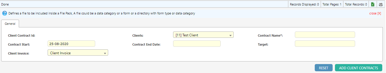 - Once completed, select ADD CLIENT CONTRACTS to finalize the details.