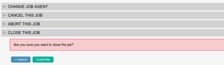 - Click the Confirm button and the job will have status of closed.