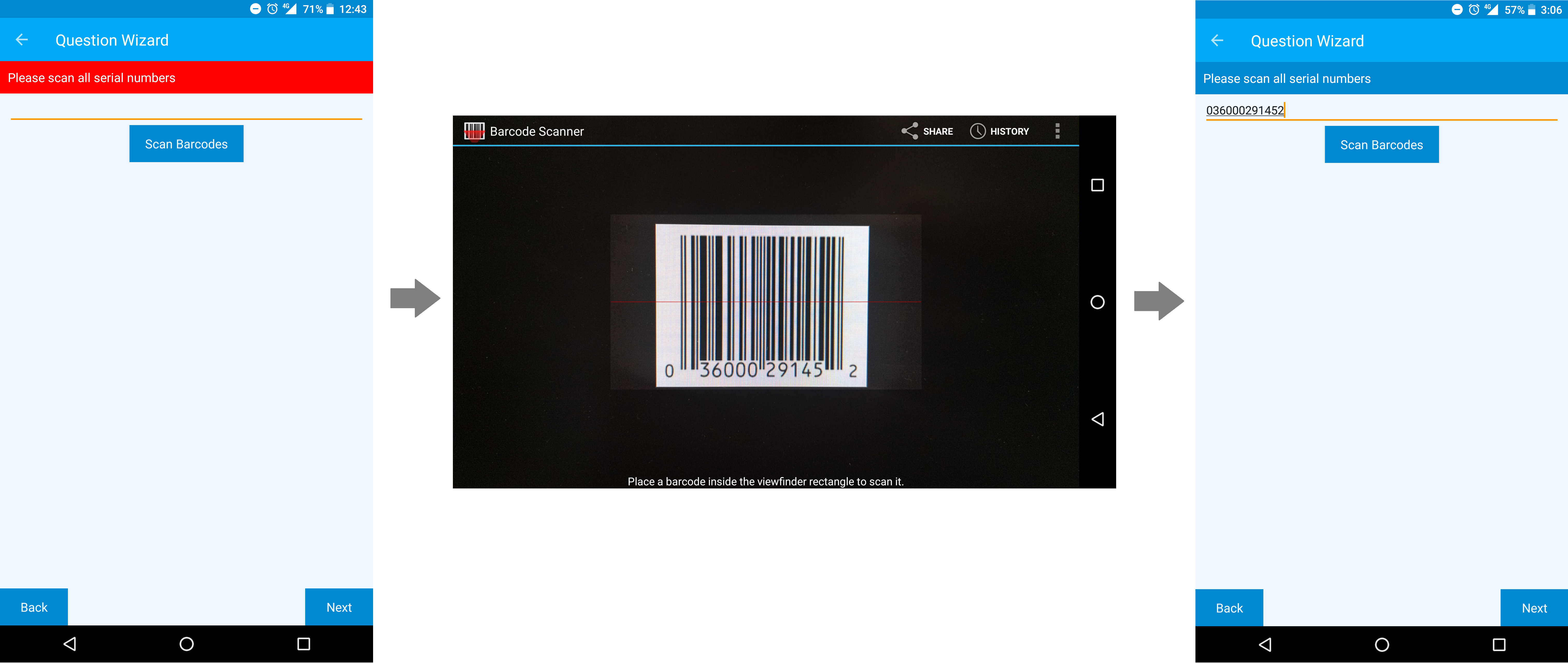 - In Dataforce ASAP, these will appear as a simple text field but in Dataforce Runabout they will appear as a barcode scanner