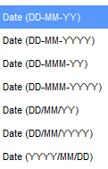 - Formats are represented as different input types in the drop down list.