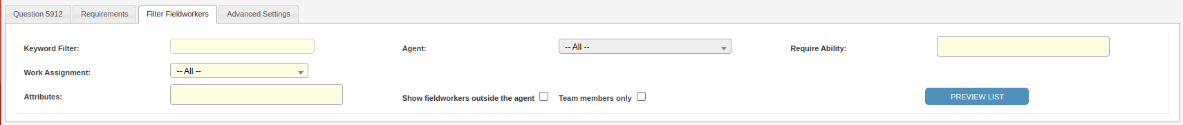 - Field worker filters