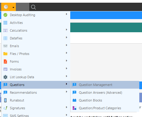Navigate to (Configuration icon) Questions Question Management