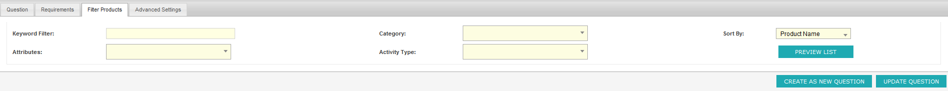 - Products in the list are determined by the filters below