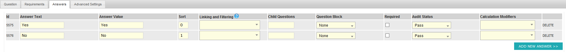 Note: These answers can be further modified from the Question Answers screen