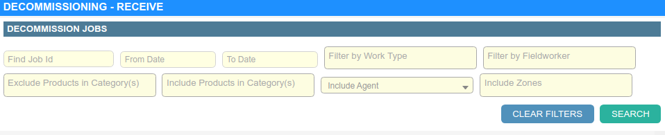 When searching for appointments to decommission, you may use a number of filters to limit the list of appointments returned. If no filters are specified then any appointments containing un-decommissioned products will be displayed.