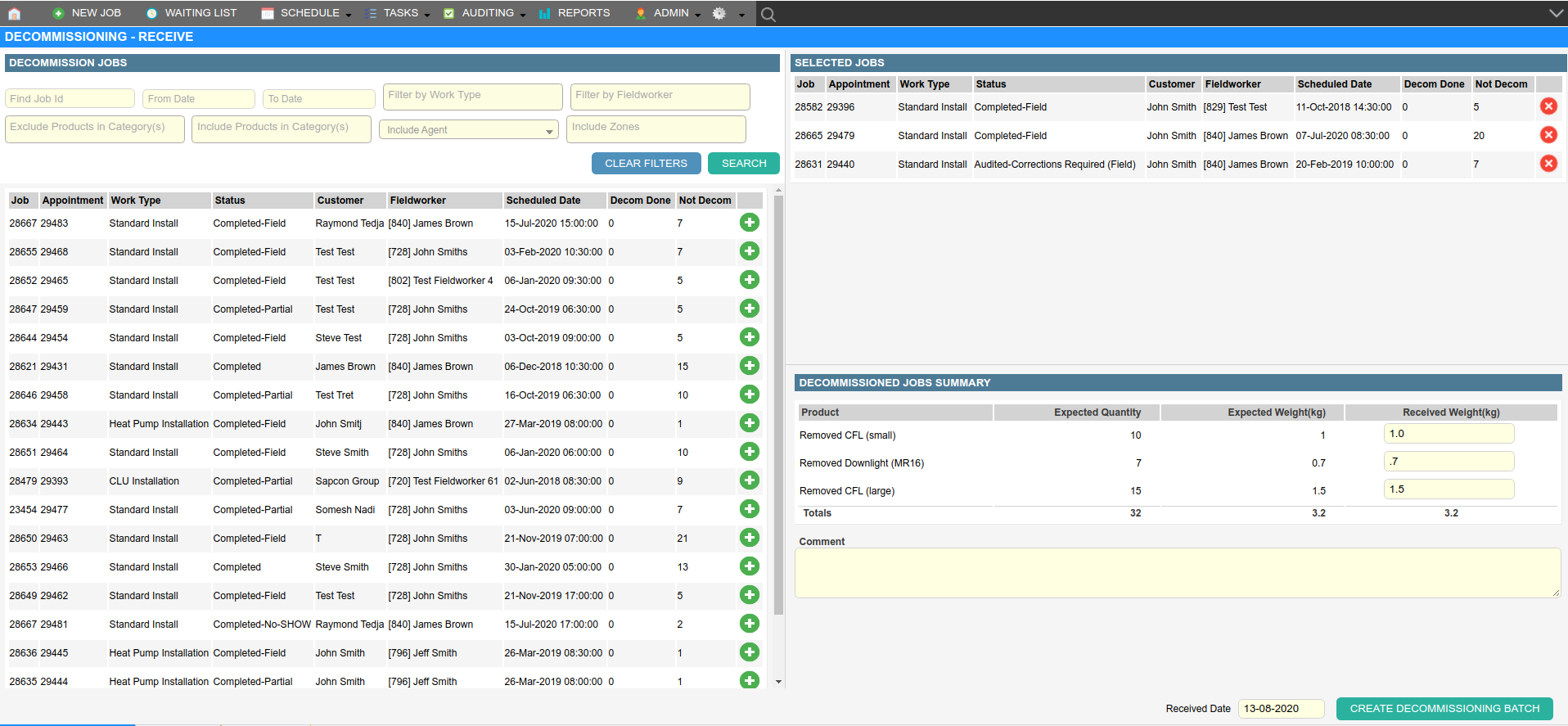 Decommissioning batches allow you to collate decommissioned products together in your warehouse as they are received from field.