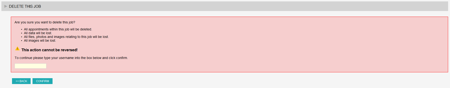 - Select ‘DELETE THIS JOB’.