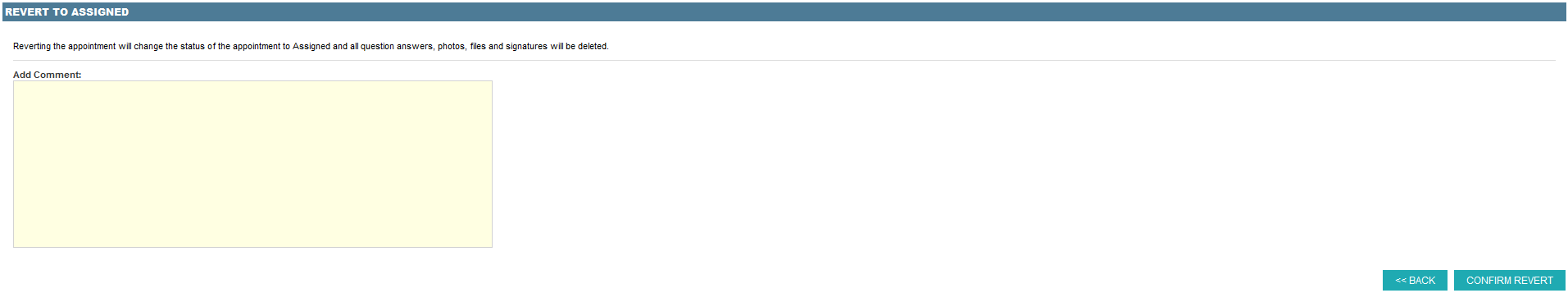 - Add a comment to the revert and select ‘CONFIRM REVERT’.