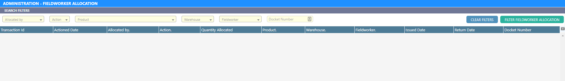 Select any necessary filters and click “Filter Field worker Allocation” to find transactions that match with the selected filters.
