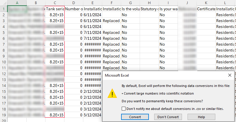 - If you must edit the file within an editor. Please use a free csv tool such as ModernCSV as this will not convert to Scientific Notation like Excel.