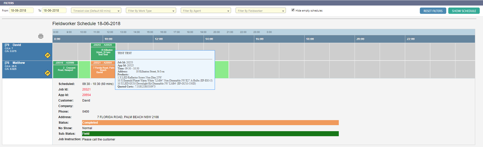 | Hide empty schedules | Do not show Field Workers with empty schedules |