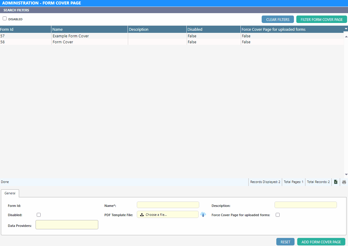 | Force cover page for uploaded forms | If checked, this cover page will be added to manually uploaded files that are replacing system generated forms that this cover page applies to |
