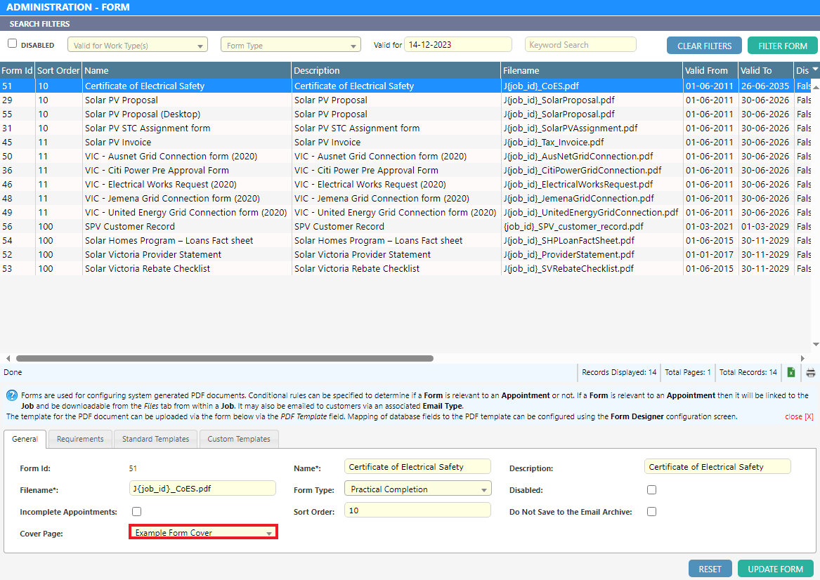 Cover pages can be created and mapped using the form designer in the same way that traditional forms are created; however they are managed from a new screen which can be accessed via Forms Form cover pages