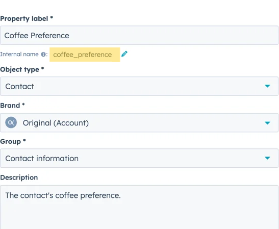 - These fields are optional and correspond to the ‘internal name’ of a property. For more info please refer the HubSpot Docs