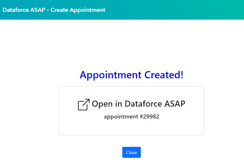 In the right-hand sidebar you will a ‘Dataforce ASAP’ box with a button ‘Create Appointment’.