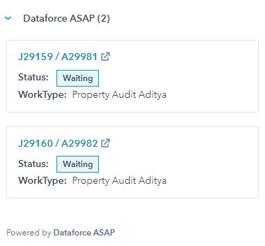 When inside a deal, company, or contact in Hubspot, CRM cards for all associated appointments in Dataforce ASAP will be displayed in the right side-bar.