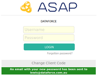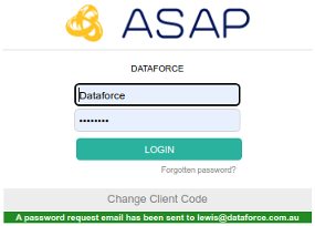 Open Login Page at https://asap.dataforce.com.au/asap/login.php . Enter your client code and click Go button to continue.