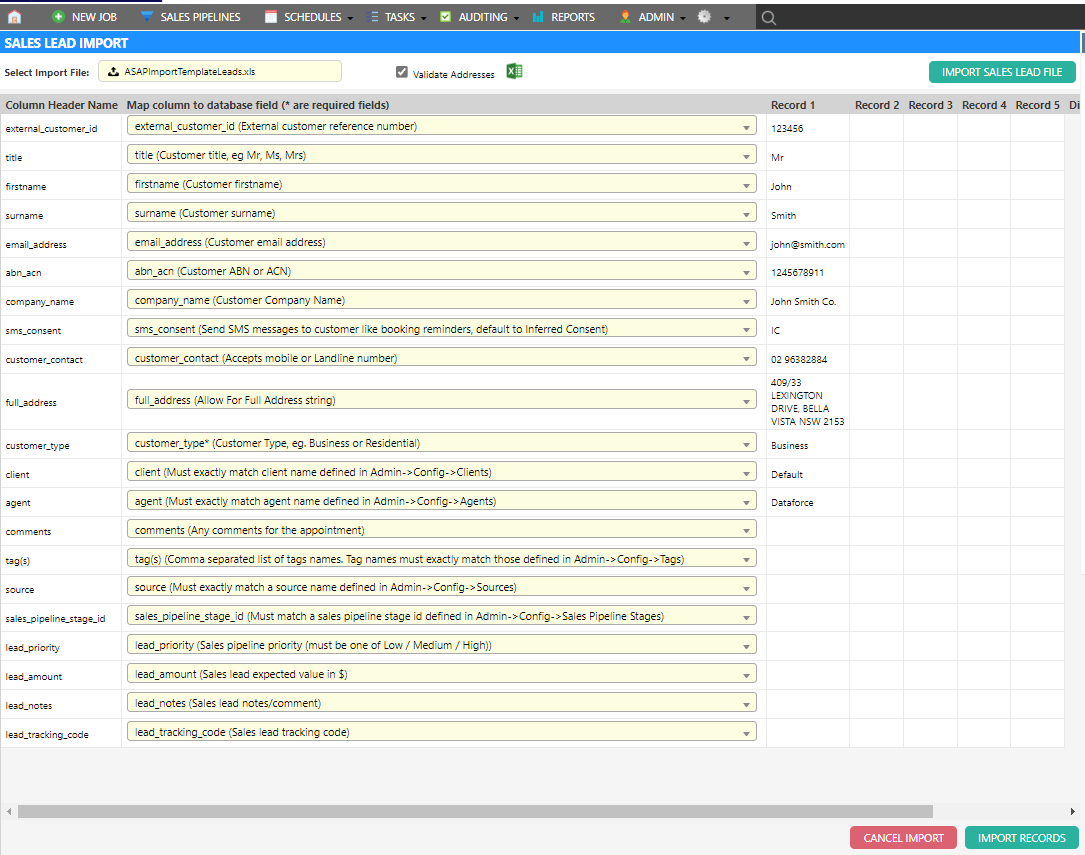 This guide covers the process for importing Sales Leads from and Excel file