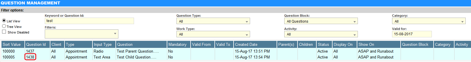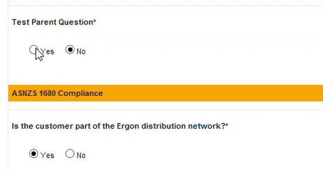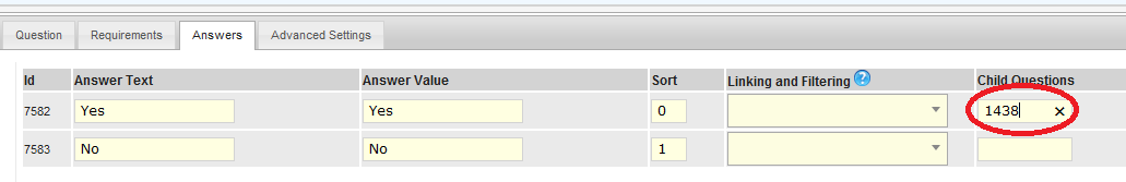 This means when an question’s answer (parent) is selected, the other question (child) will appear
