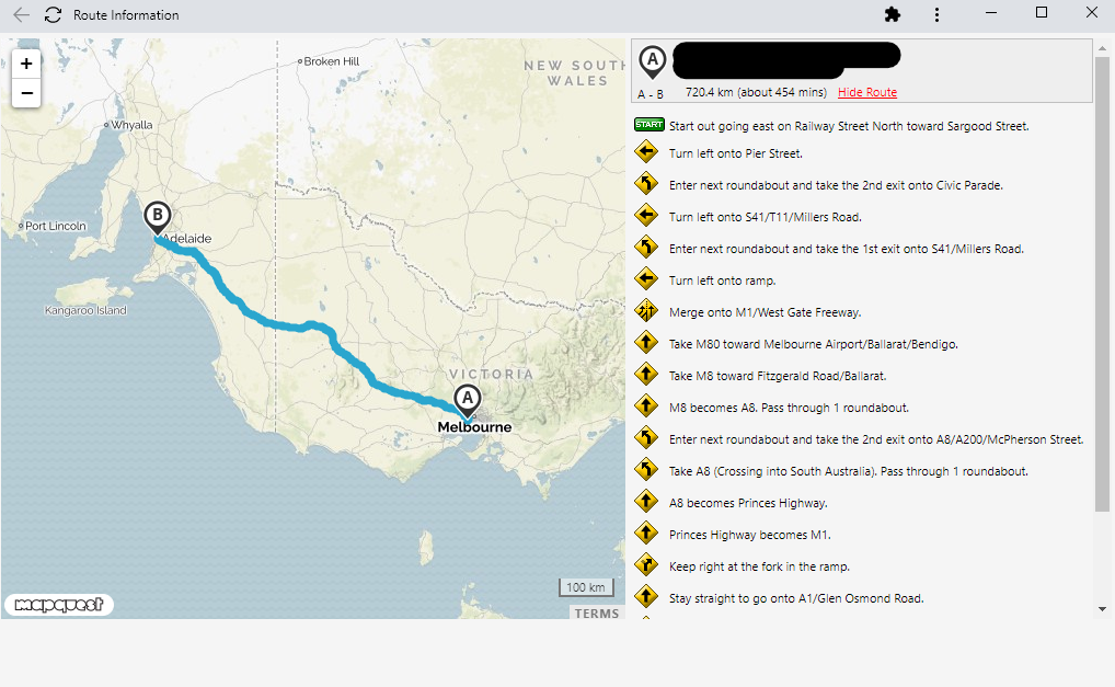- By clicking on the Arrow located next to the Field Worker on the left of the Manage Schedules screen, a window will open displaying the distance and duration of the route between the two and more schedules.