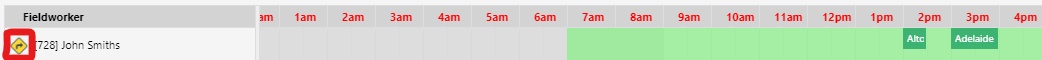 - Red slots indicate that the Field Worker is unavailable. When the cursor is hovered over the red slot, the description as to why they are unavailable appears.