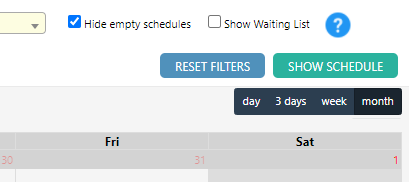 - The calendar can be viewed in four views; day, 3 days, week and month. This can be done by using the controls at the top right of the schedule view.