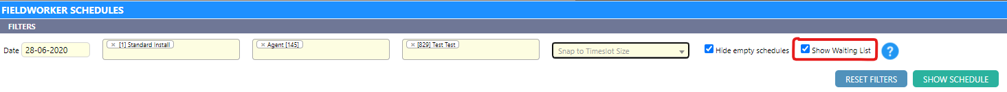 Ensure Show Waiting List is ticked before pressing Show Schedule