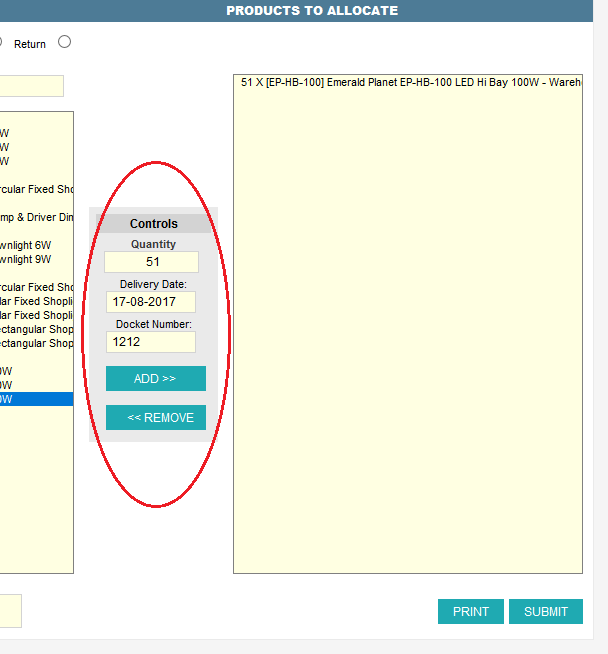 Select “Allocate” if the product will be allocated to warehouse or select “Return” if the product will be returned back from warehouse to supplier.