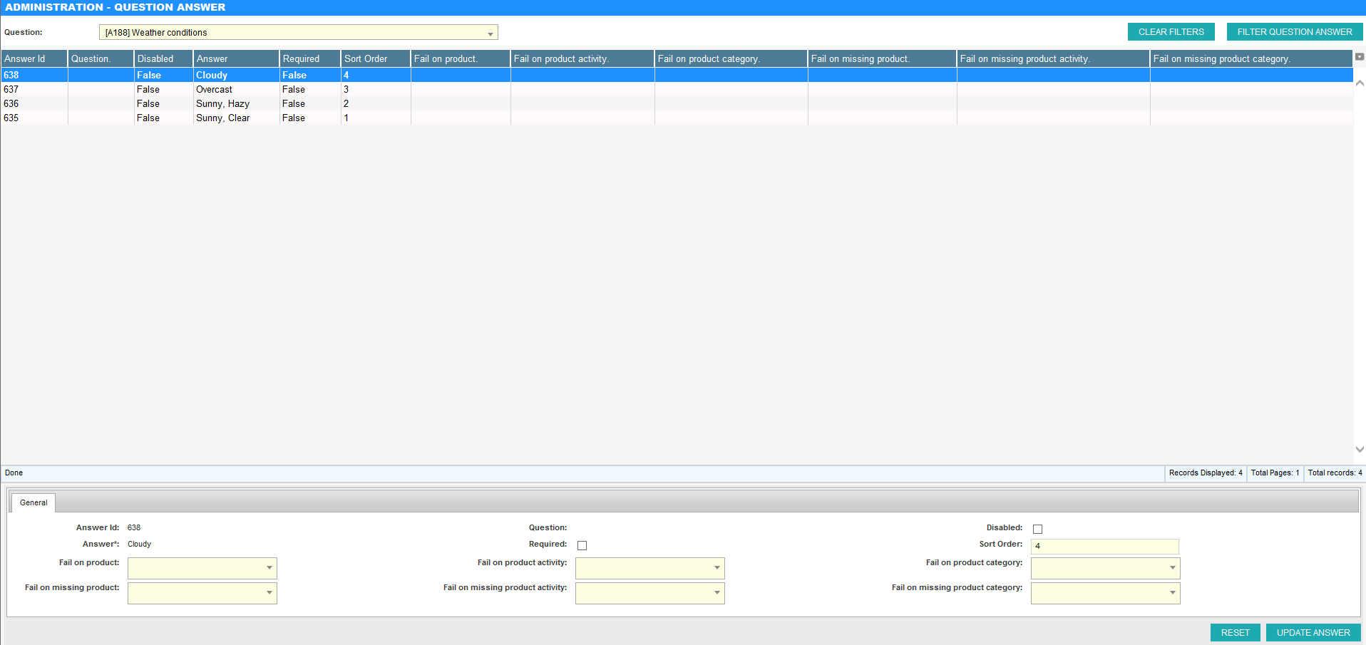 Note: Answers cannot be added from this screen. If new answers are required with advanced options, add them from the Questions Screen