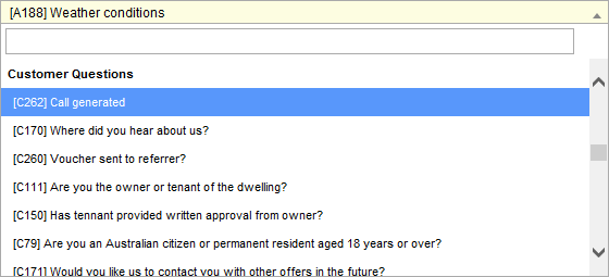- To search, click the drop down and start typing. The search will lookup question text and ID’s