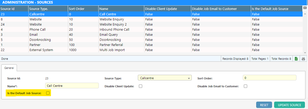 There is now the option to select a Default Source in the Sources Menu. When creating new jobs in ASAP, you will not need to select a Job Source every time as it will now automatically use the default job source if you have one set.